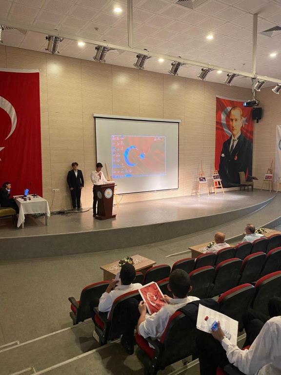 15 Temmuz Demokrasi ve Milli Birlik Günü etkinlikleri kapsamında okulumuzda anma programı düzenlendi. Programa şehitlerimiz için Kuran-ı Kerim okunarak başlandı. Saygı duruşu ve İstiklal Marşı’nın ardından günün anlam ve önemini belirten konuşma, şiir, video gösterimi, şehitlerimizin hayatından örnekler ve şehit Ömer Halis Demir’in mektubunun video eşliğinde seslendirilmesi ile 15 Temmuz Şehitlerimiz anıldı. Program hazırlıklarında ve sunumunda emeği geçen öğretmen ve öğrencilerimize teşekkür ederiz.